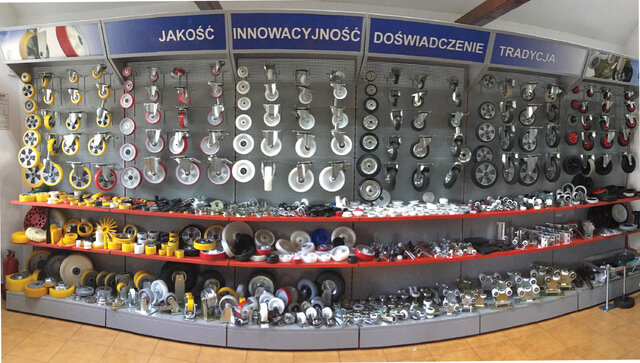 Szeroki zakres oferowanych produktów daje możliwość rozwiązania wielu problemów logistycznych. Nasze zestawy kołowe, rolki i wózki stosowane są w przedsiębiorstwach, sklepach i centrach logistycznych. Kilkanaście typów zestawów kołowych pozwala na dopasowanie odpowiedniego koła do wymagań klienta. W zależności od powierzchni po której zestawy kołowe jeżdżą możemy dobrać najlepszy materiał z którego są wykonane. W naszym wypadku może to być koło z oponą gumową, poliuretanową, a w przypadku wymagania większych wytrzymałości aluminium, stal lub żeliwo. Podobnie jeżeli chodzi o obudowy i systemy mocujące koła. Rozwiązania przeznaczone do mniejszych obciążenia są wykonane z blachy stalowej o grubości 3-4mm i łożyskowane rzędem kulek. Natomiast do większych obciążeń obudowy do kół wykonane są z elementów stalowych o grubości przynajmniej 8mm, które są spawane a łożyska zastosowane w takich zestawów kołowych odporne są wysokie obciążenia poprzeczne.