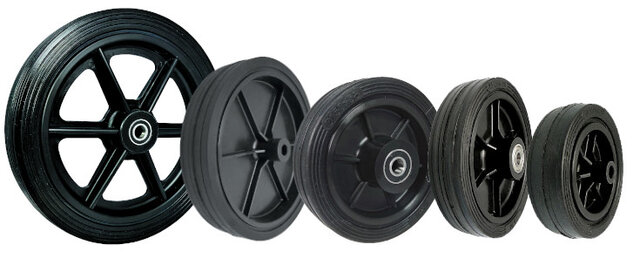 Na zdjęciach zobaczysz przykładowe koła do kosiarek elektrycznych. Różnią się one od siebie dokładną średnicą i zastosowanym mechanizmem. Dzięki temu pozwalają na korzystanie w połączeniu z różnego rodzaju kosiarkami.