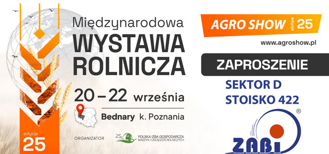 Z radością zapraszamy Państwa do odwiedzenia naszego stoiska podczas Targów AGROSHOW BEDNARY 2024, które odbędą się w dniach 20-22 września 2024 w Bednary k.Poznania. Jako wiodący producent kół do maszyn rolniczych, mamy zaszczyt zaprezentować nasze najnowsze innowacje i rozwiązania, które z pewnością przyciągną Państwa uwagę i mogą znacząco wpłynąć na efektywność Państwa działalności rolniczej.