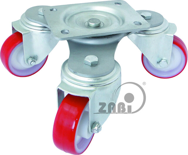 Zestaw składa się z trzech zestawów kół połączonych ze sobą za pomocą jednego mocowania, umożliwiającego obroty w pionie oraz dowolne manewry. Koła wykorzystane w zestawie posiadają śrenice 80mm i wykonane poliamidu wraz z bieżnia poliuretanową idealnie tłumiącą drgania. Specjalna budowa pozwala na łatwe skręcanie zestawem bez dodatkowych sił i środków pomocniczych oraz zachowanie stabilnego kierunku ruchu w linii prostej.