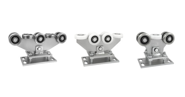 • Wózki jezdne (2 szt.) – serce bramy. Dobiera się je do ciężaru i szerokości światła wjazdu.
