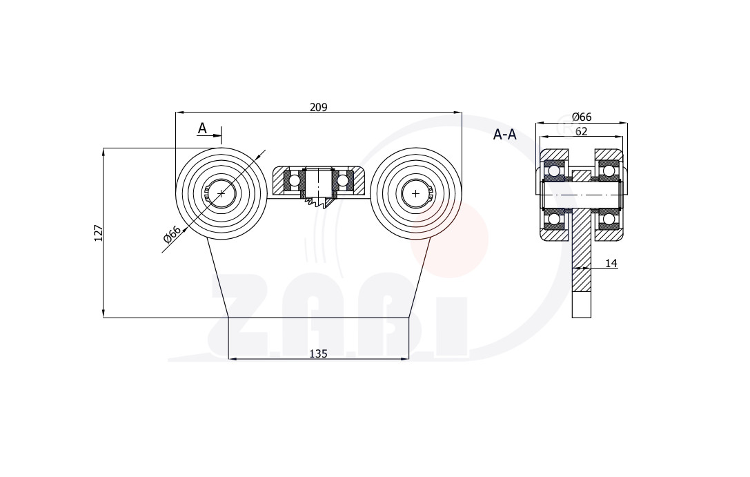 Wózki i akcesoria do bram, Wózki odporne na wysoką temperaturę do 180°C, Do profili 80x80 ścianka 5mm o symbolu G-5MM-80E