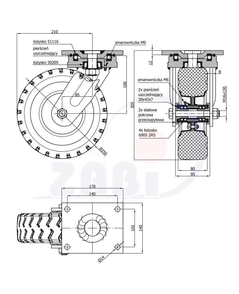 92MPD Zobacz produkt 80 305 650 12.50 105x140 ø14 210 Kulkowe 6305