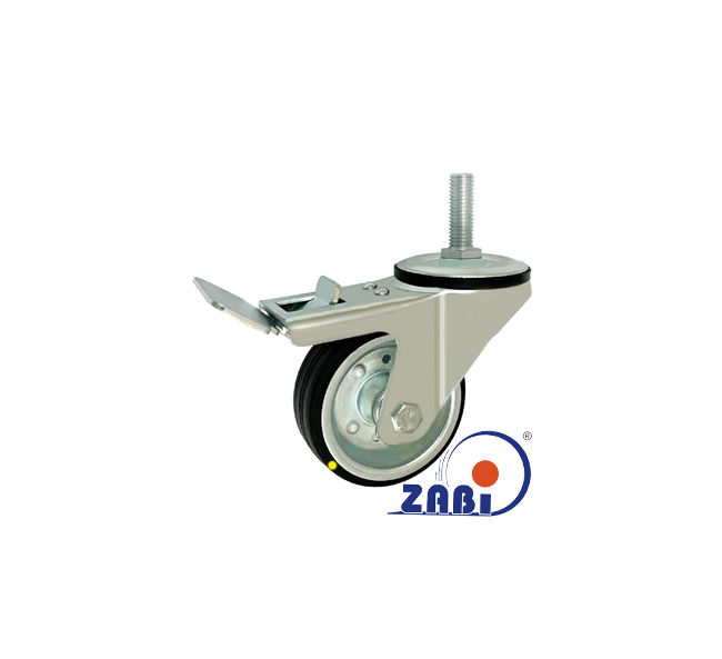 Koła elektrostatyczne, Koła elektrostatyczne metalowo-gumowe, W obudowach z trzpieniem i hamulcem o symbolu 7H*M12-AS