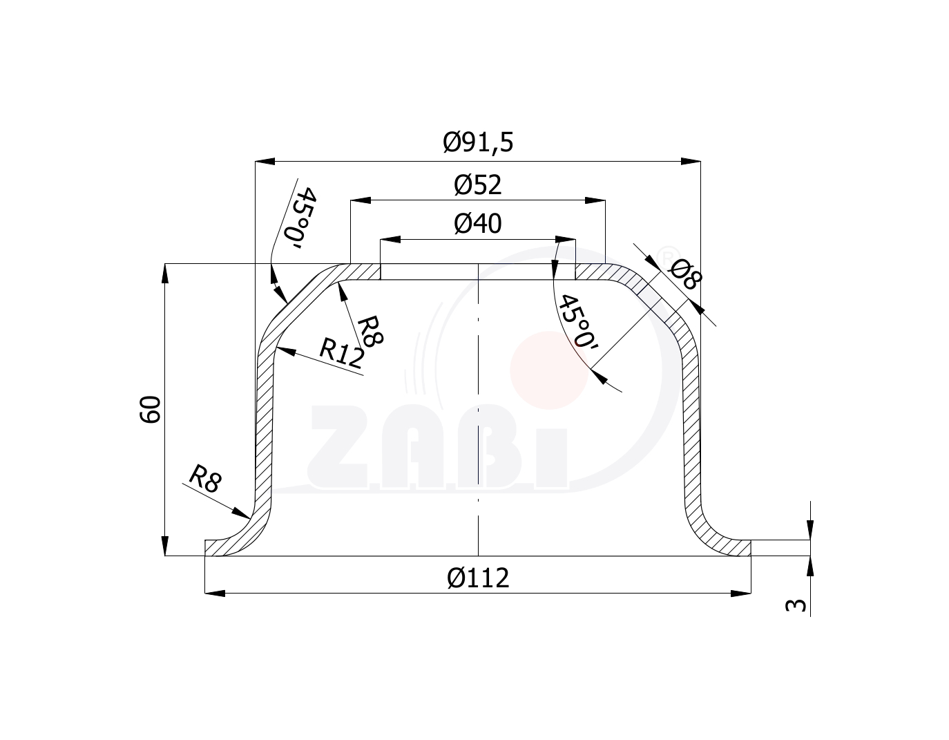 SP/112x60/8/3 Zobacz produkt ø 112 0.45 ø 8 Stal surowa Grubość blachy 3mm