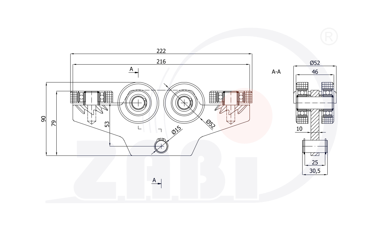 P-2T-60/M12 Zobacz produkt 70 0.30 60x60x3 ø52 2 x poliamidowa 2 rolkowy z płaskownikiem i śrubą M12x100