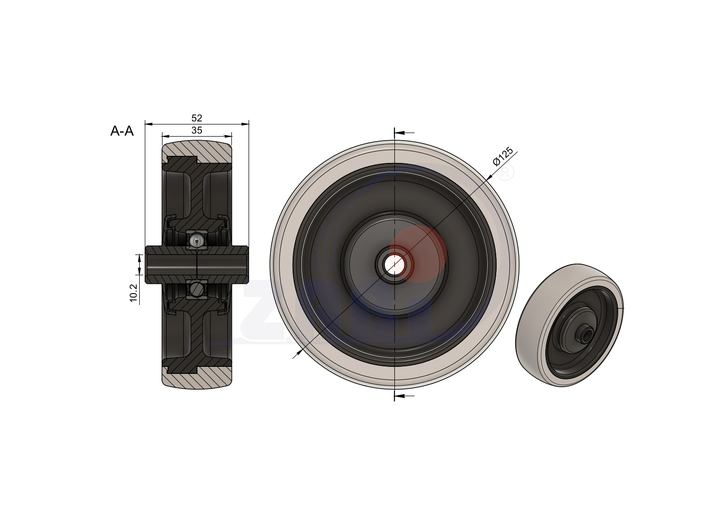 Koła i zestawy kołowe, Koła polipropylenowo-poliuretanowe, Koła o symbolu 20PPUŁ