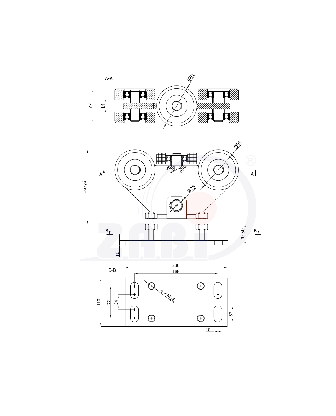 Wózki i akcesoria do bram, Wózki do bram przesuwnych, Do profili 100x100 ścianka 4mm o symbolu WR-5M-100