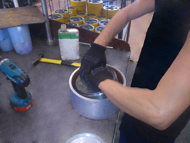 1. Pierwszy etapem jest odtłuczenie korpusu, który będzie posiadał powłokę poliuretanową.
